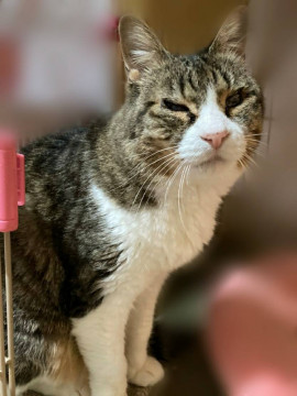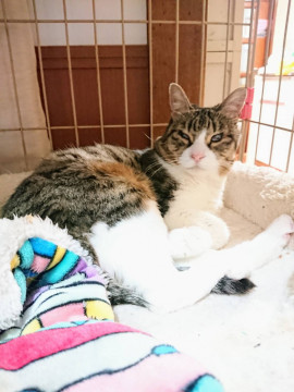 ○推定12歳弱くらい(2025年5月時点)のキジ白の女の子です。