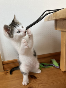 人の所に寄ってきます。とても人懐っこい子達です。3匹の中では、ケージにいる事が一番多いです。