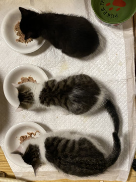 地域猫のお母さんが仔猫を餌やりさんの所に運んできました。