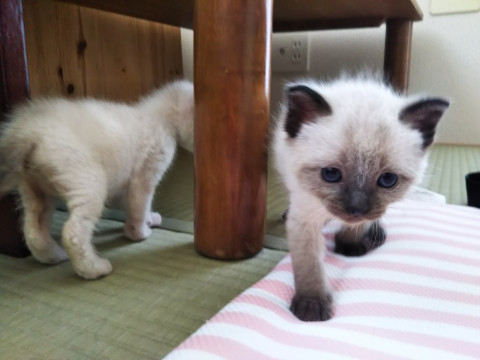 隣家の裏の茂みにて6匹ののら子猫を保護。そのうち2匹を引き取り保護致しました。