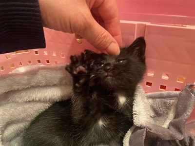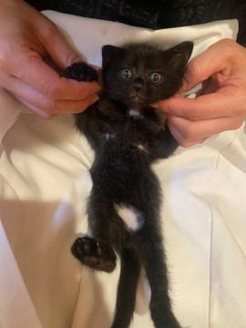 屋根裏で野良猫さんが子供を産んで育ててる様だけど、壁の隙間に落ちた との事で緊急保護した子です。