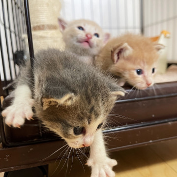 兄弟3匹で保護しているのですが、3匹ともよくミルクを飲み、起きている時はよく鳴き、元気よく遊んでいます。人懐っこい子です。