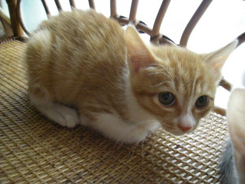 茶トラ白尻尾がかぎ尻尾です。尻尾はお団子見たいになっています。