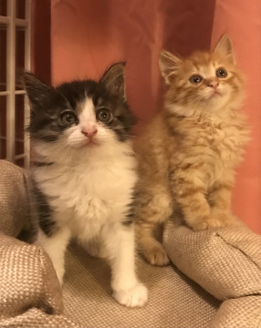 兄弟2匹で捨てられていたので、可哀想に思い動物病院に連れて行かれました。動物病院の先生もとても優しいので、保護して里親さん見つける事にされました。その時たまたま我が家の保護猫連れて行きましたので、こちらで保護して里親さん見つける事にしました。