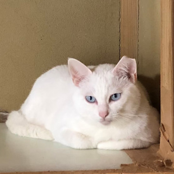 ○真っ白で小顔、青くてキレイな目、真っ白で長い尻尾を持つ美猫です。