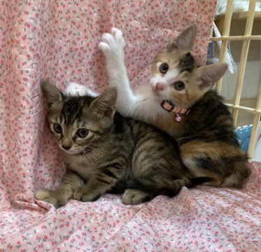 ウィルス検査陰性、ノミ、ダニ駆除、駆虫済み、食欲もあり元気に姉妹で遊んでいます。