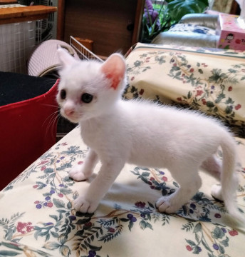 毛色 白 頭に薄くグレー色の毛が二本はいっています