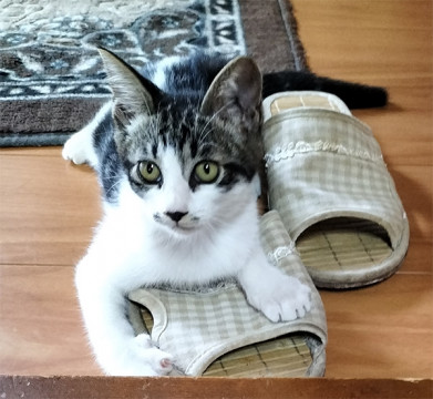 7月末、実家の物置下に居ついていたのを、餌付けして8月15日に保護しました。