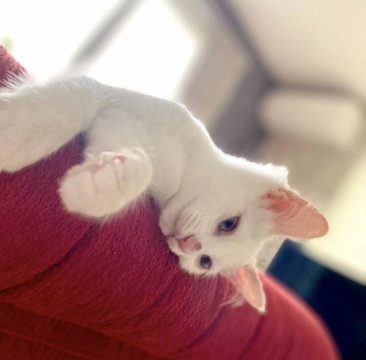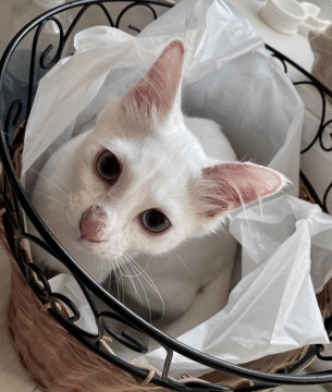 穏やかな子です。最初だけ人見知りますが、すぐに慣れて甘えんぼになります。人にくっついていたい子です。夜一緒に寝ます。