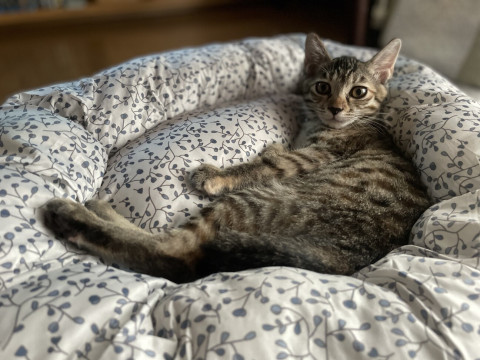 ・姉弟や他猫と毎日元気よく遊んでいます。