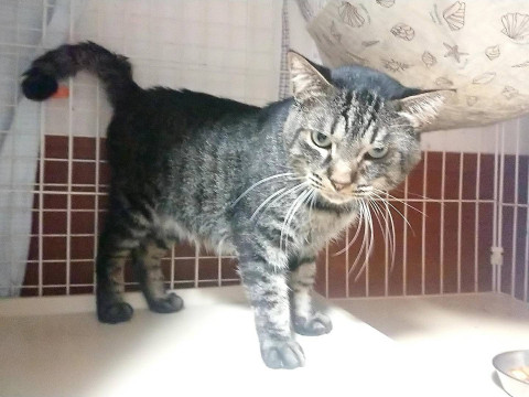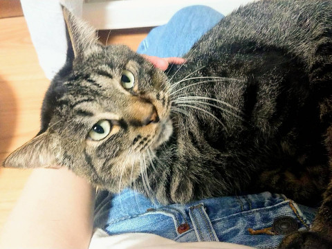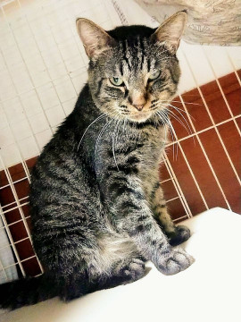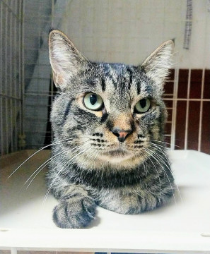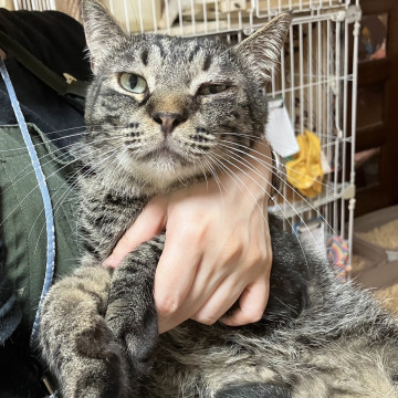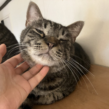 ○推定6〜8歳くらい(2025年9月時点)のキジトラの男の子です。年齢はあくまでも推定であり、実際の年齢は分かりません。