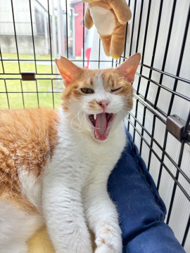 現在保護部屋にて、沢山の猫達と元気に過ごしています。