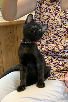 場所見知りや人見知りを全くしない天真爛漫な子で、誰の膝の上でもポンと乗ってくるとても人懐こい子です。