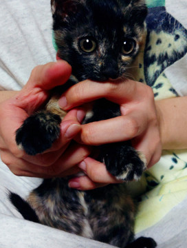 母猫とはぐれ、ひとり鳴いていたところを知人が発見。