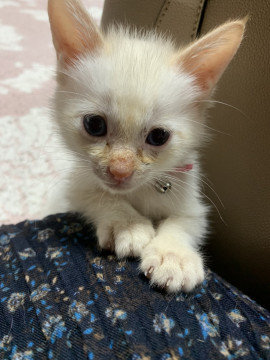 高齢者だけの家族の庭先に生後2~3週程の子猫が突然ポツンと現れ、世話も出来ないと困り果てて相談があり引き取りました。