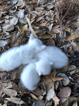 このままでは車にひかれるとおもい、抱っこして道路脇に向かいました。そこにあと2匹捨てられており、あわせて3匹の猫がいました。一匹はすでに衰弱しておりたすかりませんでした。二匹は元気です。シャンプーしてノミも駆除しました。