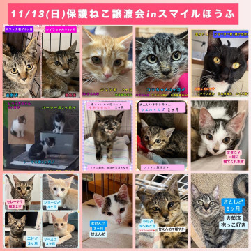 13日(日)防府市スマイルほうふでの保護猫譲渡会に参加予定です。
