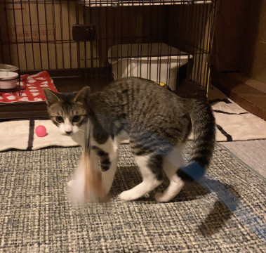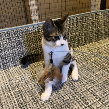 キジ白男の子、長しっぽです。