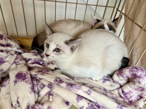 子猫達がいるとの連絡で保護する予定が姉妹全員警戒心が強く中々捕獲出来ず、やっと保護に至りました。まだ小さく、寒いお外にリターンは難しいので里親募集に至りました。