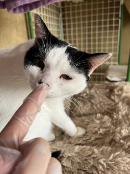 小ぶりな 可愛いお顔の白黒のおんなの子です。
