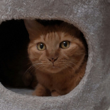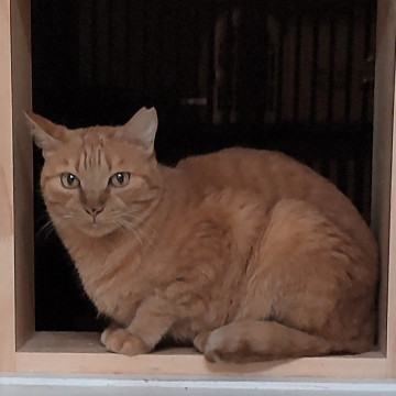 元の飼い主から12歳と聞いていますが、とてもかわいらしい見た目と、高いところにもピョンピョン上る体力もあり、健康そのものなので、もっともっと若く見えます。
