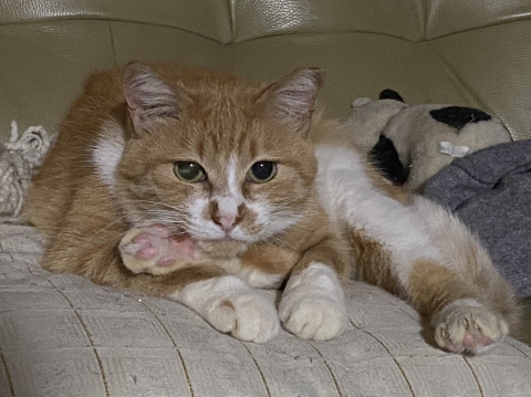 ○推定6~8歳くらい(2025年11月時点)の、長毛系の混じった茶トラ白の女の子です。