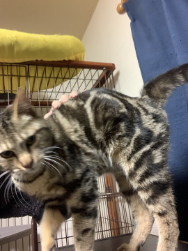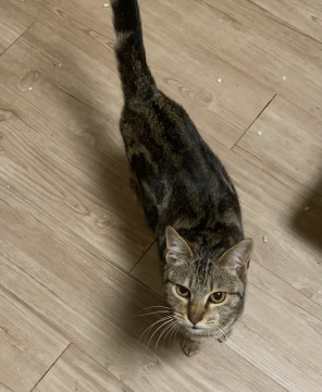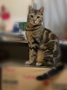 アメショのような柄のある金眼の美男子で、抱っこ好きです。