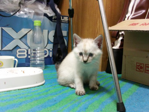 目はブルーで耳と尻尾は茶色です。 少し尻尾が短く曲がっています。