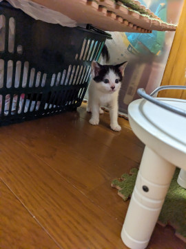 5月16日23時頃、犬散歩中に、知り合いの家の駐車場の物置場所から子猫の鳴き声が聞こえました。