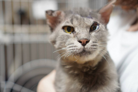 ★保護当初は頭に穴が開いていました。その後手術を受け穴は塞がりましたが、再度傷口が開いてしまう状況を何度か繰り返しています。