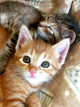 兄弟猫のキジトラのアンちゃんと仲良く遊んだり一緒に眠っています。
