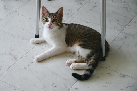 福島県内のとある会社に突如、とても人慣れしたガリガリの中猫さんが現れました。