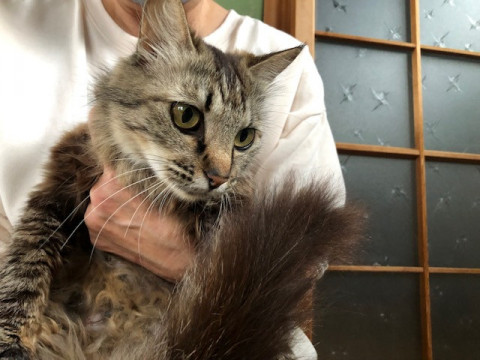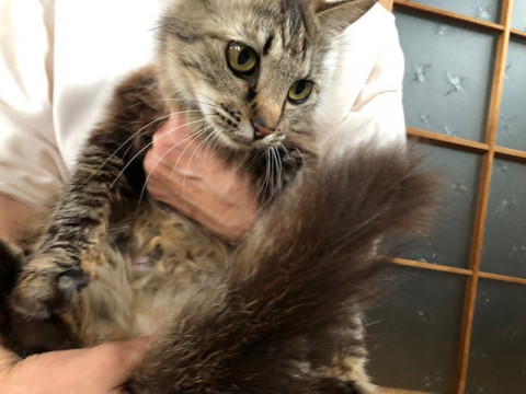 当時足を怪我していて歩ける状態ではなかったのと、食品を扱う会社だったのでやむを得ず保護して面倒見ることになりました。TNRの予定でしたが、保護期間が1ヶ月以上となりリターンするのは不可能と判断したため里親を募集させていただくことになりました。