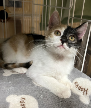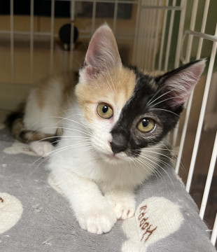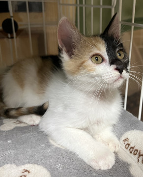お顔と後頭部の柄に特徴のある三毛女子です。
