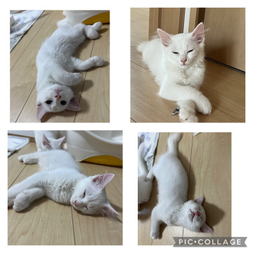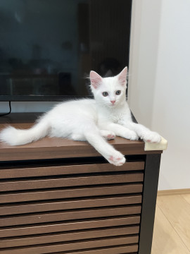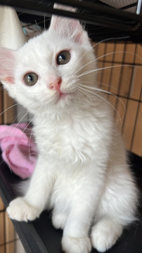 母猫はオッドアイの長髪っぽい白猫ちゃんです。