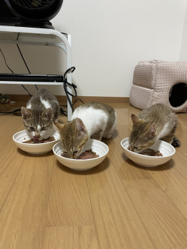 餌やりしている近所のおばあちゃんのところに来ていた野良ちゃんの親子を保護しました。