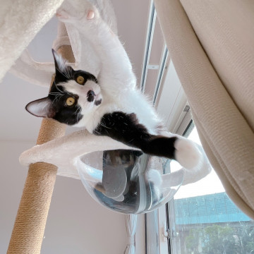 初めましての大人猫には、思わずシャーの挨拶が出てしまいますが、フレンドリーな性格なので馴染むのは早いです。