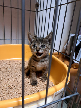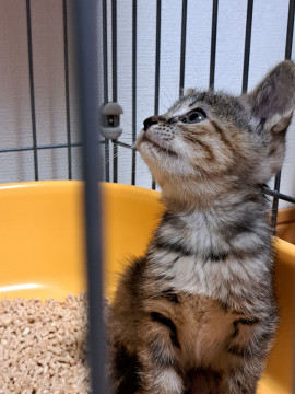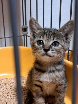 まだまだ1ヶ月半で小さいですが、ゴロゴロ喉を鳴らしてくれる愛嬌のある可愛いネコちゃんです。