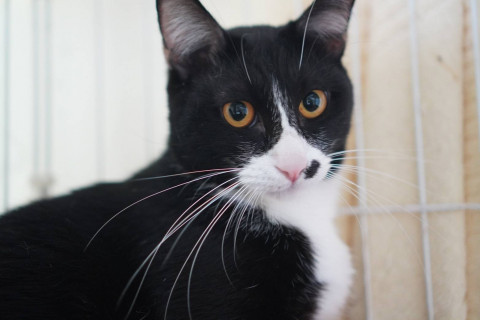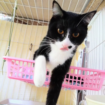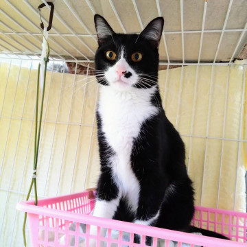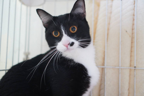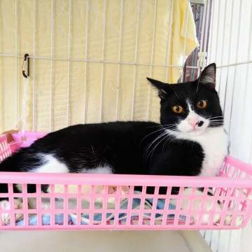 ○3歳(2022年8月1日生まれ)の黒白ハチワレの男の子です。