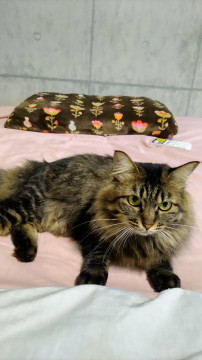 半長毛、胴長短足気味、運動神経よし、怖がり、警戒心強く人を怖がりますます!ゆっくり焦らず時間をかけて家族になってくれる方希望。猫たちとは仲良しです。最近ブラッシングをさせてくれます。