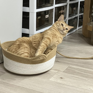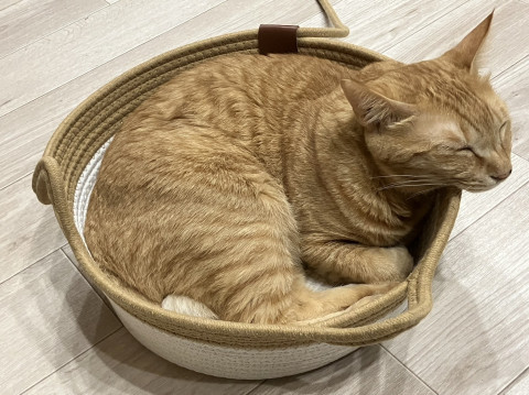 毛柄は少し薄めの茶トラ柄で、先が丸まった少し珍しい尻尾も可愛いです。