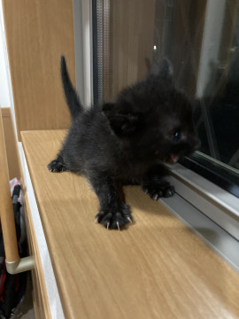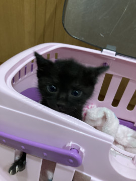 保護当初からよく鳴いていました。先に譲渡しましたきょうだい猫に比べて、少し甘えたさんのようです。