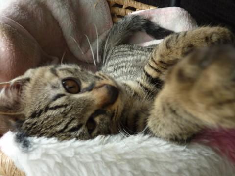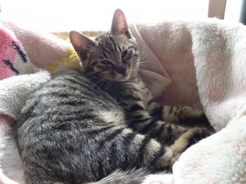 子猫のうち3匹は里親さんのもとに引き取られ、この子だけが残っています