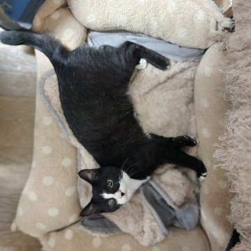 右目が保護された頃の感染症の影響で涙が出ますが、そんなことは関係ないくらい甘えん坊で可愛いです。お膝が大好きで直ぐに膝に乗ってきます。