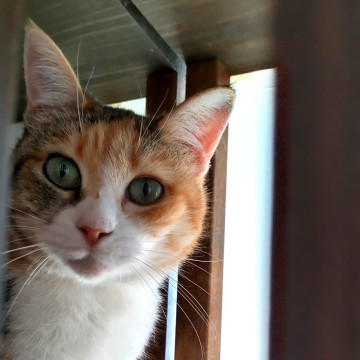 元のお家では人が来ない部屋に1匹で引きこもっていたそうで、ねこ窓ハウスに来てからも、うまく身を隠せる場所がなくて居心地が悪そうでした。