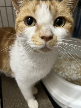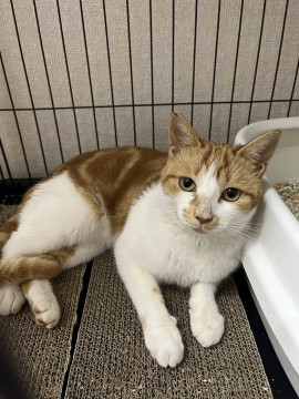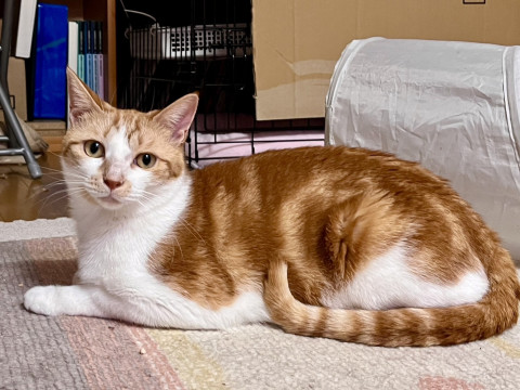 ○推定5〜6歳くらい(2025年12月時点)の茶白のアメショ柄混じりの男の子です。体重は4.6kg(2024年2月時点)です。