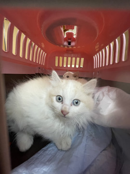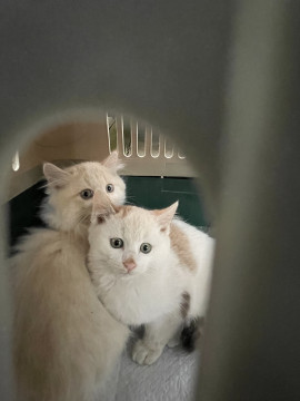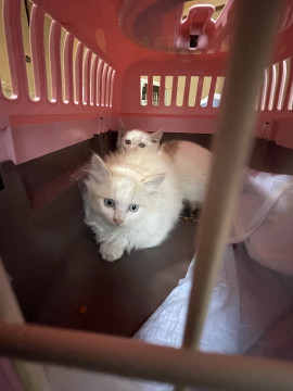 住宅地の空き地に、飼い猫ではない子猫が2匹いると連絡があり、この寒さには耐えられないと保護しました。