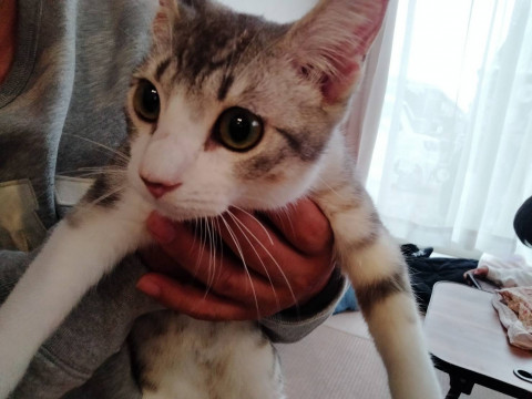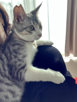 4兄弟の1匹としてミルクから人の手で育ちました。トライアルに行ったのですがご家族のアレルギーがわかり、重篤化したため残念ながら戻ってきました。とってもとっても可愛い子です!ぜひ家族になってあげてください。