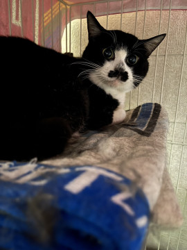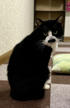 ○推定9歳以上(2025年1月時点)の白黒ハチワレの男の子です。