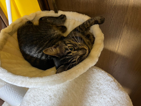 キジトラでシッポの短い男の子です。